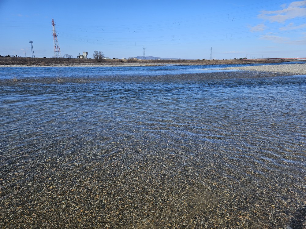 とはいえ、本川は流れが強いところが多いので、できるだけサケ稚魚の負担にならないように、緩みになっているところを放流場所に選定しました。